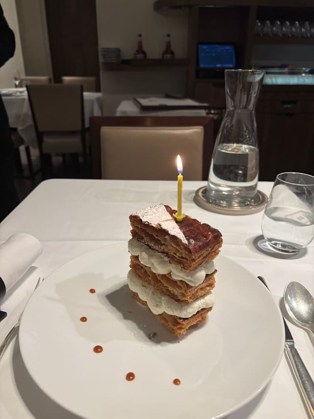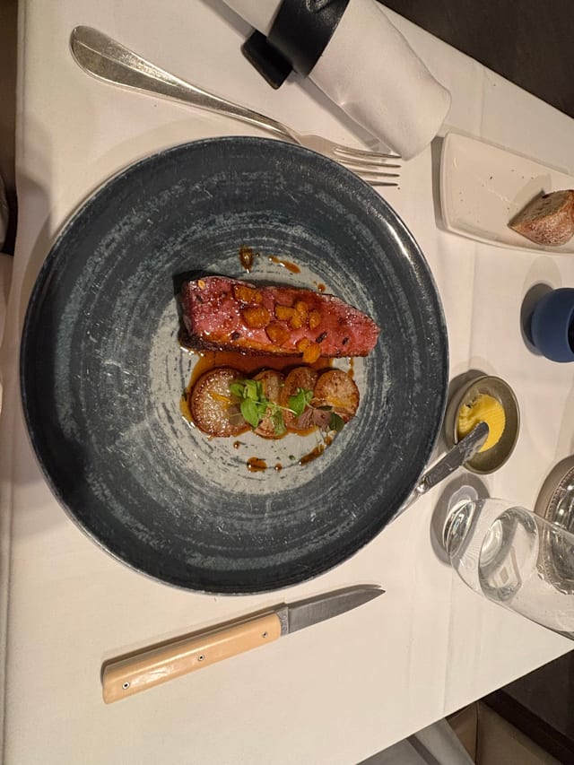 6/10Went in August 2025 and this was 90% tourist attendance, which made us wonder if it has become a tourist hangout given the location next to the Eiffel tower. The main room is not particularly upscale for a fine dining restaurant. Service is professional but not warm. The person that greets you is the only personable highlight. Food was good in general as expected for a 1 star Michelin, but not exceptional. One of us ordered the beef filet and the meat was not good quality, had to be sent back. The pigeon was the signature dish and did not disappoint.