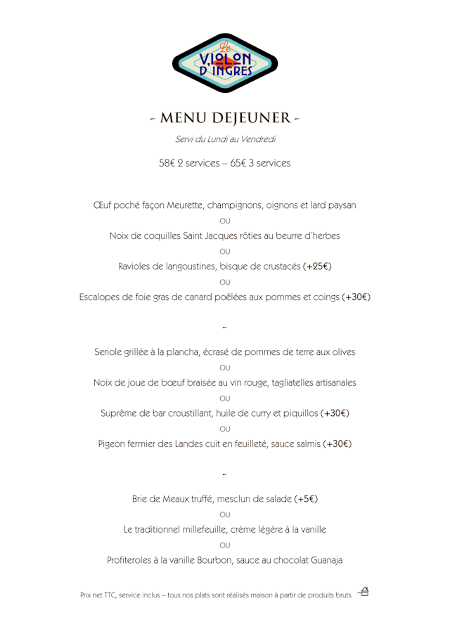10/10We were in the restaurant this time for New Year’s Eve. There was a set menu that was magnificent. The service was efficient and friendly with the service team even joking with us throughout the evening. The restaurant has a modern sleek feel in design that is welcoming and comfortable. All in all it made for a memorable meal. Le Violon is one of my go-to restaurants in Paris.