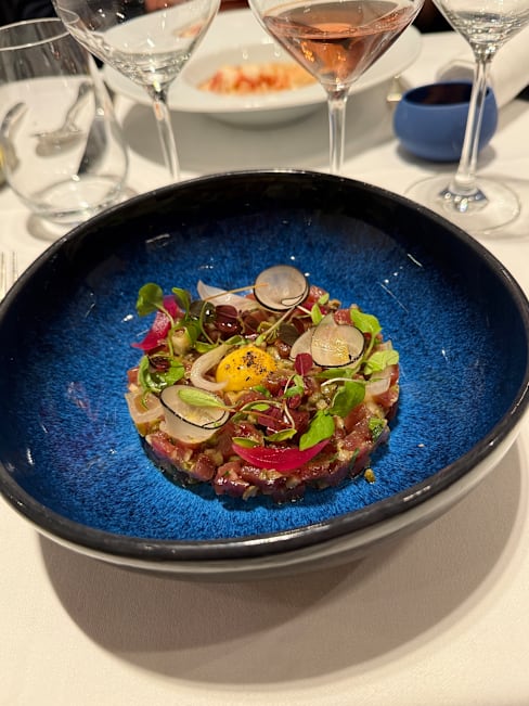 6/10Went in August 2025 and this was 90% tourist attendance, which made us wonder if it has become a tourist hangout given the location next to the Eiffel tower. The main room is not particularly upscale for a fine dining restaurant. Service is professional but not warm. The person that greets you is the only personable highlight. Food was good in general as expected for a 1 star Michelin, but not exceptional. One of us ordered the beef filet and the meat was not good quality, had to be sent back. The pigeon was the signature dish and did not disappoint.