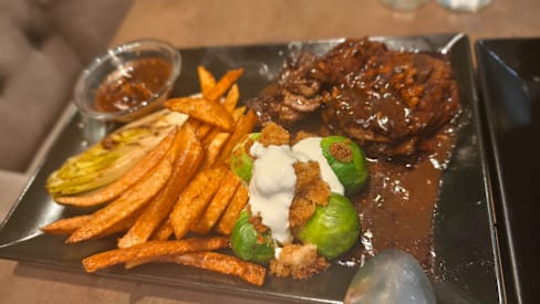 5/10We were disappointed by our experience at VLT. We arrived for our 19h30 reservation to an almost empty restaurant…only one other table of 2 diners present. The waiter was friendly and seated us promptly. He took our drink orders and returned quickly. VLT has a limited menu which we knew in advance. We all ordered the beef bourguignon. We were told that it was sold out as well as the gambas dish because they served over 20 customers at lunch. So we ordered the special of the day which was the roasted lamb shoulder with a potato purée. The waiter took our order to the kitchen and returned shortly to tell us there was no purée left so our meals would be served with french fries. Had we known all of this in advance of our drink orders, we would definitely have gone elsewhere for dinner.