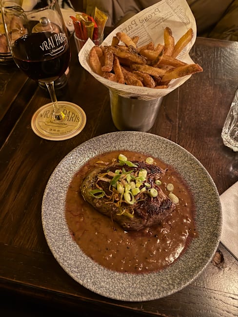 9.5/10My first time in Europe, with Paris being the first stop… I had seen this restaurant recommended online by “Les Frenchies” so I made a reservation on that basis. The most incredible lemon chicken and salad (great dressing, very fresh), passionfruit, daiquiri, and crepes for dessert !! Servers were attentive and accommodating, the ambiance was SO wonderfully Parisian!! an excellent experience I will remember, and it will bring me back!! Kudos to La Vrai Paris!!!!