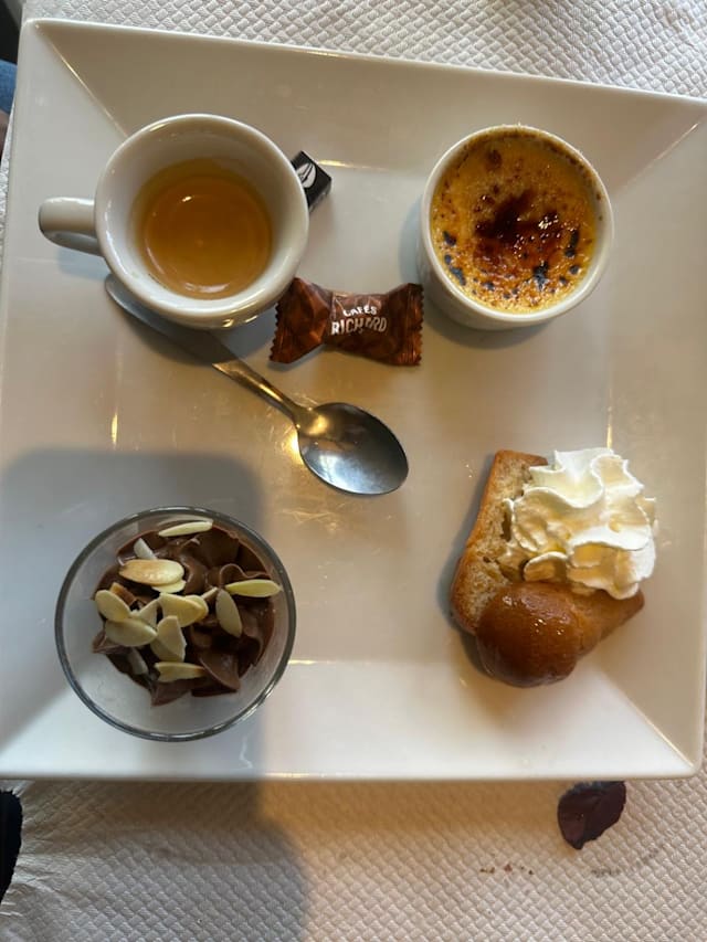 5.5/10The day main (plat du jour) was a not very flavorful leg of lamb. The meat was not first rate. The sauce was too floury. The sautéed potatoes were ok, a bit dry, though. The baba was just ok, not as spongy as it should have been in my opinion. I had been accustomed to better quality in the past. My table companion agreed about the lamb. He was also not enthused by his chocolate mousse. The kir cassis was a pale pink instead of a ruby red color. Service was adequate. On the whole, not a great experience. Disappointing.