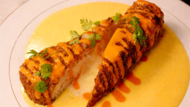 - Gambas dorées, mayonnaise épicée & coriandre fraîche