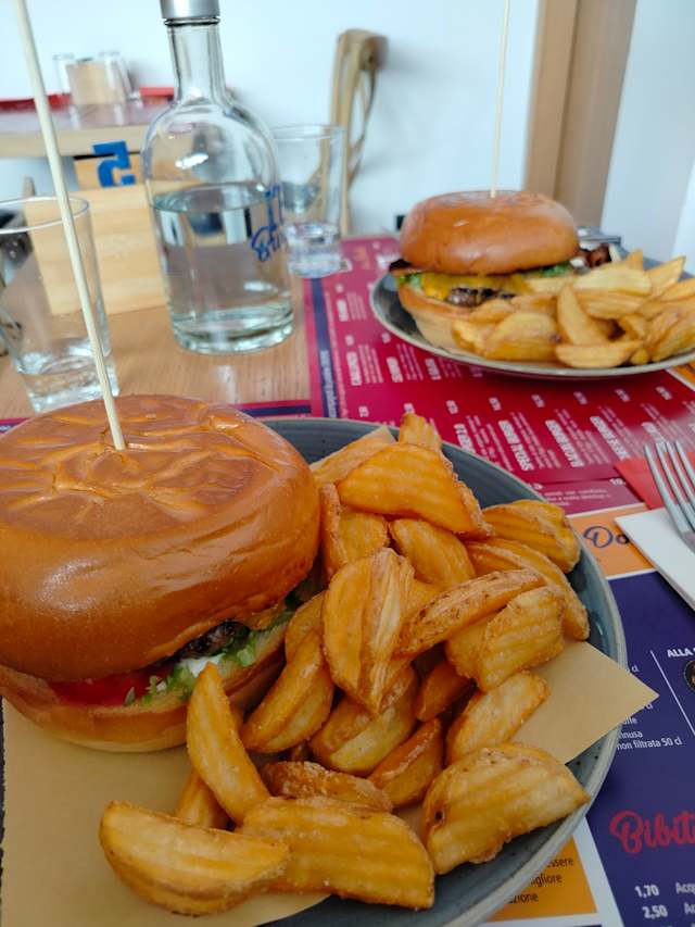 - Panino al latte artigianale, hamburger di manzo (170gr), cheddar, bacon, pomodoro e salsa burger.
