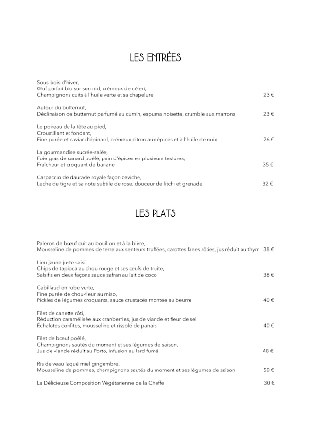 Menu évasion€95 per guest