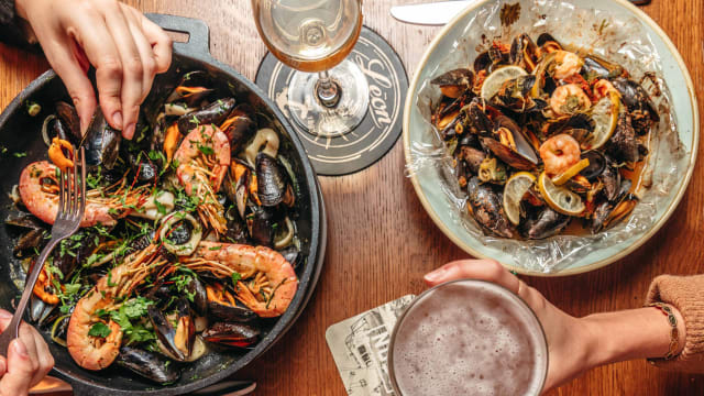 5.5/10Food was okay but nothing special. Mussels were good but the Leon paella was not so good. Place was too loud mostly from a very noisy family adjacent to our table. I asked to be seated elsewhere but the server said no with other seats clearly available.