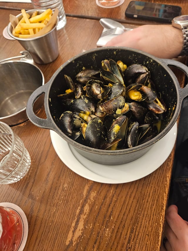 8/10Excellent portion of moules/frites. The entrée a partager was a little bit oily. Service ok