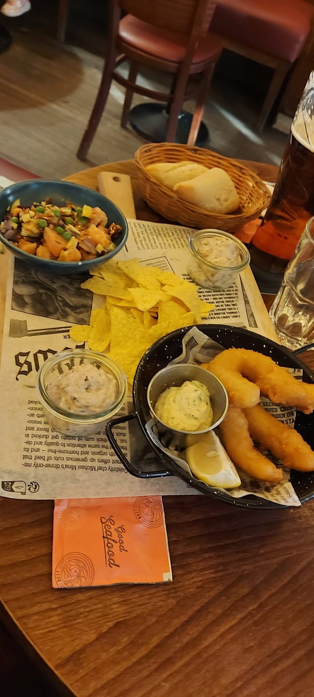 8/10We really liked the fish and chips and paella. The dessert was also very nice