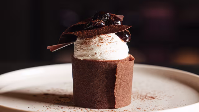 - Mousse chaude au chocolat noir 70%, sorbet cacao