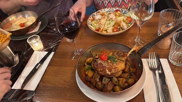 7/10The atmosphere and interior of the restaurant are wonderful, and the service is good. However, the food was disappointing. The steak was tough and lacked flavor, the duck was dry, and the frog legs didn’t impress either