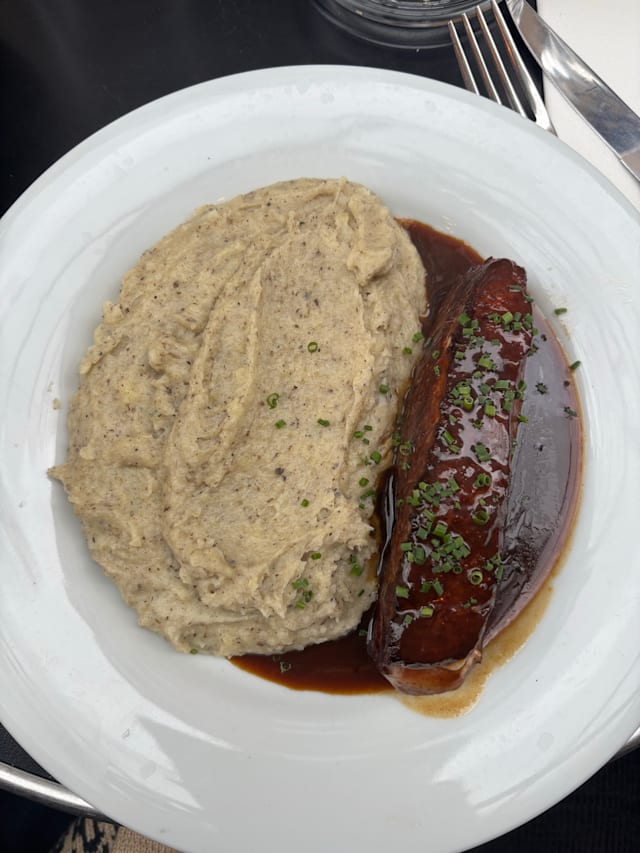 3/10We ordered entrecôte with fries and bernaise, but had a hard time managing to cut and chew the meat. It was really sinewy and tough. We told the waiter in å polite manner, but she didn’t seem to care. The ambience was a bit tense, and there were very few guests in the restaurant.