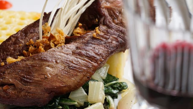 4.5/10Very offhand attitude of our server no effort made to give us bread which other tables had Sadly we all had steaks which were tough and not medium as we ordered. Our lack of French prevented us complaining We will not be back and would not recommend it