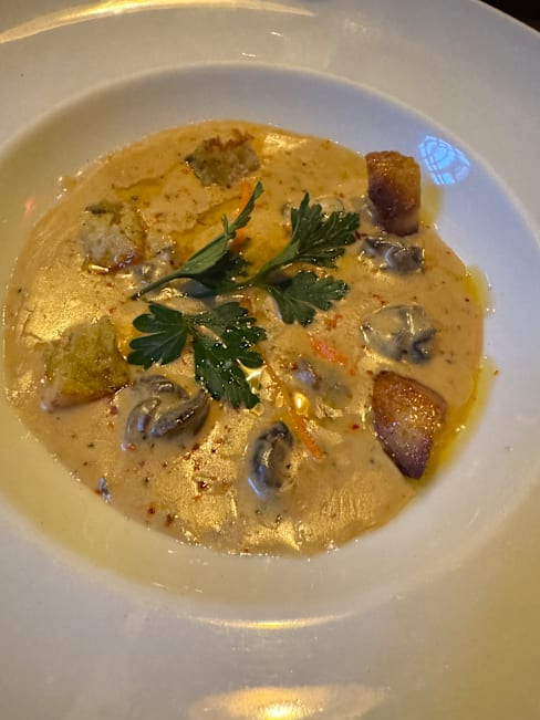 10/10The muscle appetizer and veal main were excellent. Hot Chocolate cake with ice cream also a delight.