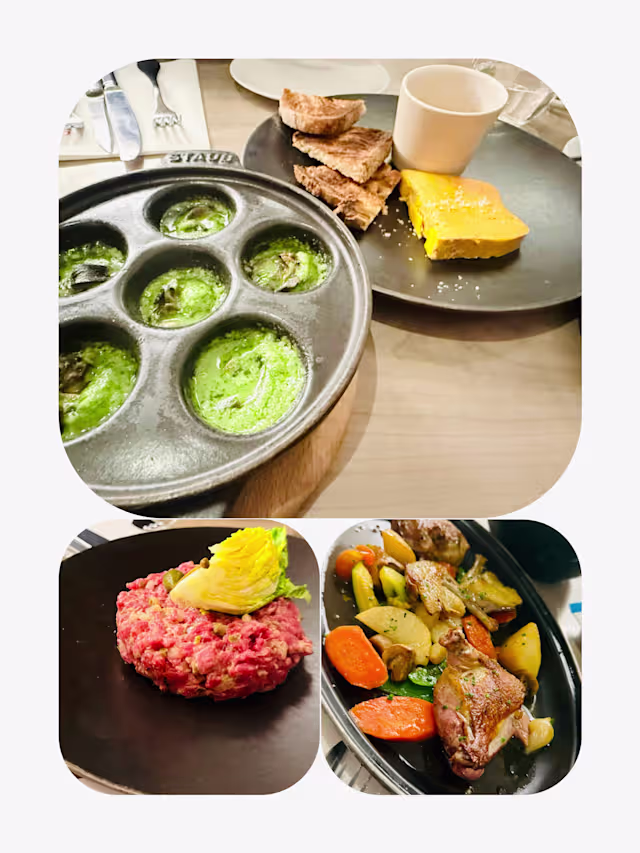 10/10+1The food and the service here are excellent! Make you feel cozy and very relaxed. Thanks for Damien’s warmly welcome and service! We ordered the sea scallops, risotto with squids, escargot and crème brûlée. They all taste delicious. The chef is from Taiwan 🇹🇼 same as we are. ❤️ Highly recommended to try some tasty French cuisine here!
