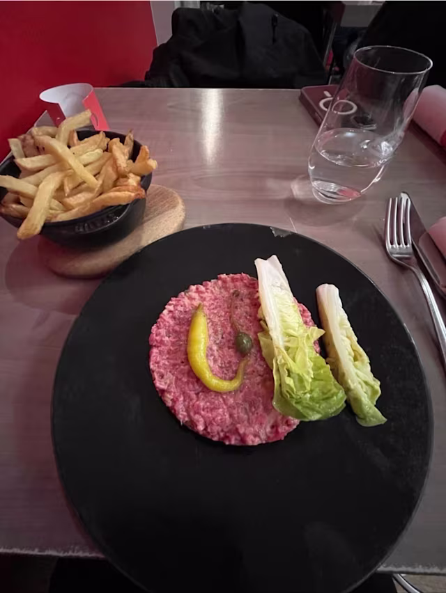 - Tartare de bœuf au couteau, frites maison