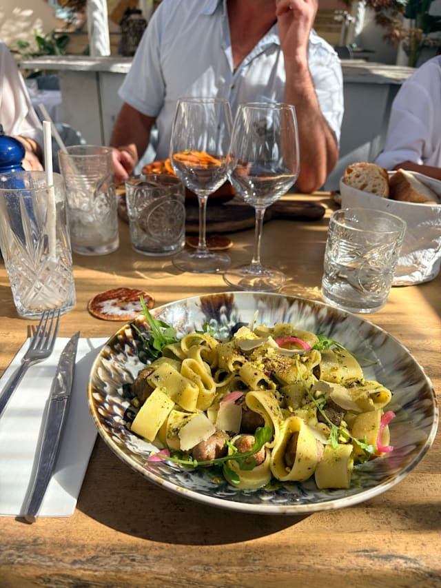 Saucisse de Toulouse, Calamarata au pesto de Pistache et Basilic