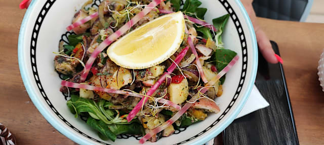 Salade d'Automne: Noix, Gorgonzola au miel sur sa tranche de pain de campagne, jambon de Parme