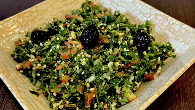 - Caviar d'aubergine/ hommous/ jagique /taboulé/kefta/ blanc poulet mariné/ kebab/riz