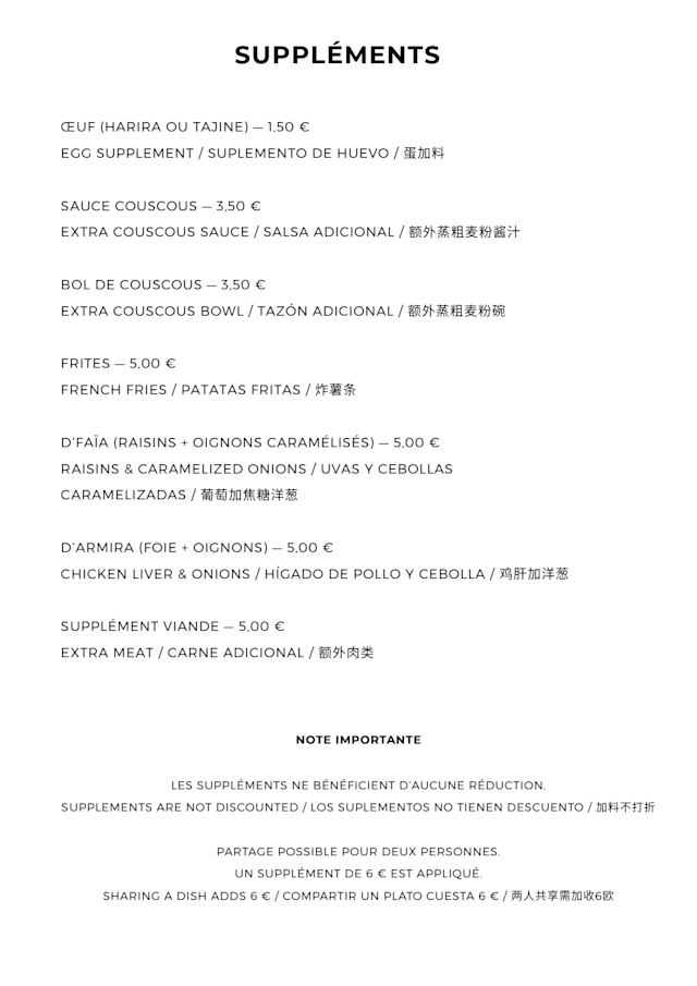 10/10The location was easy to find, down a quiet side street. Our hostess and server was also, I believe, the chef. She was lovely, helping us to decide even with our lack of French. The food was wonderful! We very much enjoyed the Brick with cheese and egg inside a crispy filo. The Tajine Poulet came out bubbly hot. The Couscous de Boeuf was so flavorful with dried currants (?) in the couscous. The table beside us ordered vegetarian and the menu is accommodating. We truly had a delicious meal and would come again. Merci beaucoup!