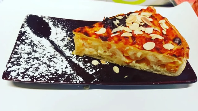 (Vanille, miel, pomme, sauce caramel, biscuit)