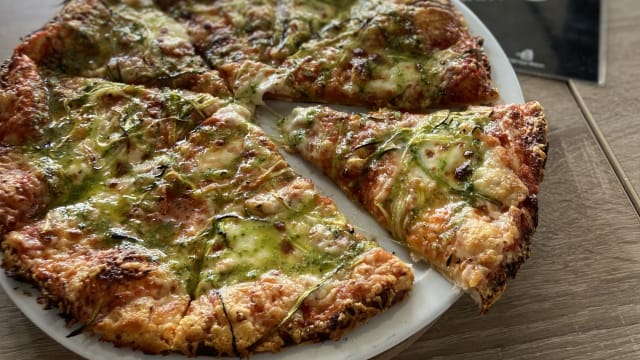 - Crème fraîche, sauce tomate, emmental français, chorizo, mozza, roquefort