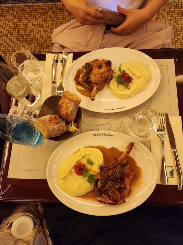 Thank you very much for choosing Les Deux Magots for dinner Tina. We often like to conceal this way so that the chop remains tender and juicy. We are very happy you liked it and hope you had plenty of other good discoveries in Paris.