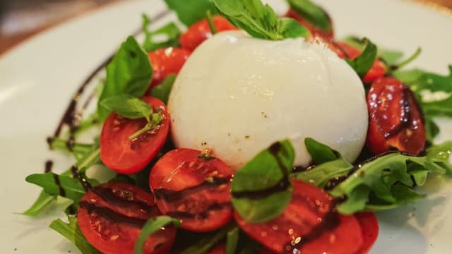Mix de verdes, tomates cherry sicilianos, rúcula y burrata de andria