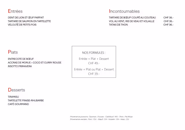 Easter menuCHF 52 per guest