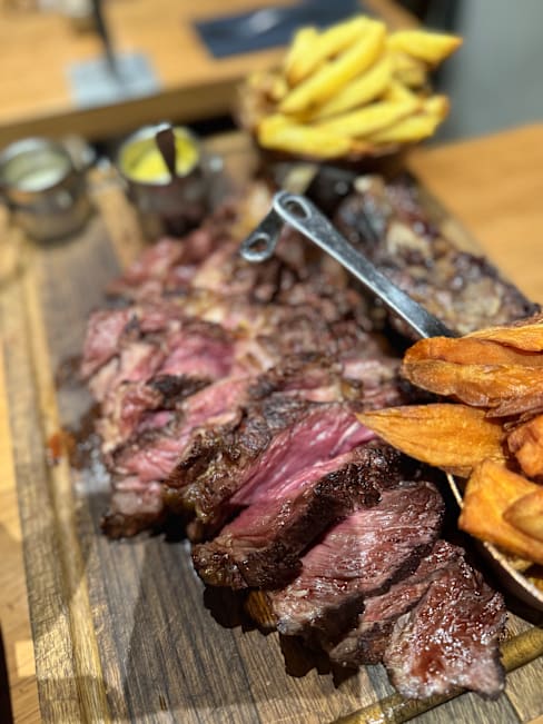 10/10The setting in the restaurant is very cosy and staff was helpful and kind. Ribeye steak was done to perfection an so was the fries and bone marrow. Can only recommend.
