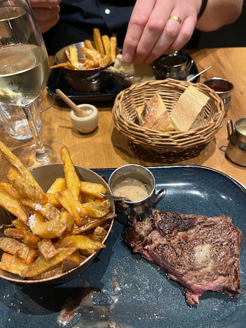 10/10Excellent steak in a convivial atmosphere, good value wine, and friendly service.