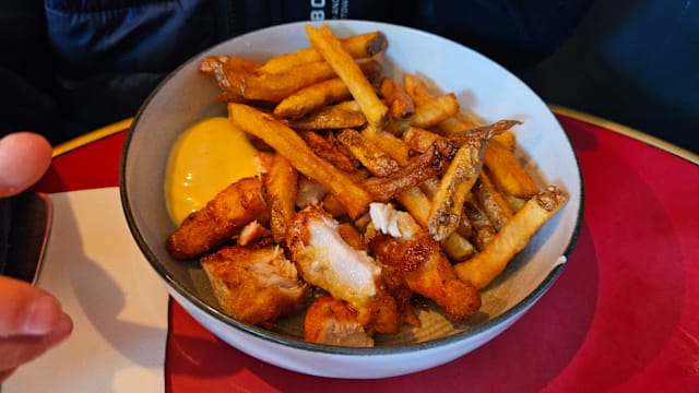 6.5/10Nice people, good atmosphere. More of a pub where you can eat. The food was not exceptional: lasagne bland with wet salad on top (where is the crispy/crunchy top of the gratinated lasagne?). My tempura fish was good. The service is friendly, but we were sitting with our dirty plates for quite a long time, waiting to ask for a dessert. The dessert (Café Gourmand) delicious. Not expensive, so perhaps we should not expect a higher standard.