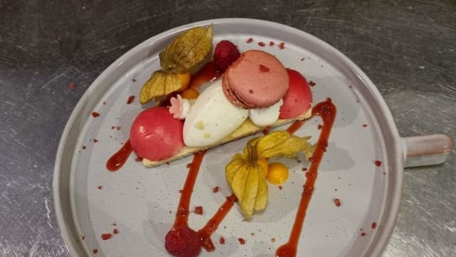 - (sorbet passion, fraises fraîches et cava)