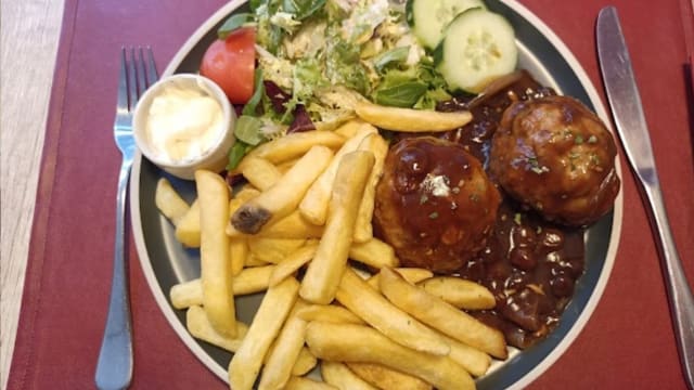 - Nos boulets liégeois fait maison avec frites et salade vinaigrette