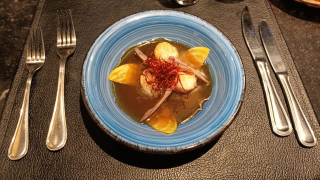 - Ravioles de langoustes, crème de foie gras et oeufs de lompе