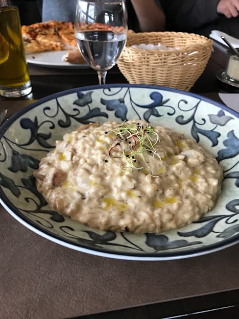 7/10Pleasant ambiance and service. The wine list is limited but yet the first two bottles that I chose were not available. The wait for the first course was long but the second arrived immediately after we had finished it. My prawns were excellent but the perch filets were disappointing as were the bruschettas. We didn’t take pizzas but they looked excellent.
