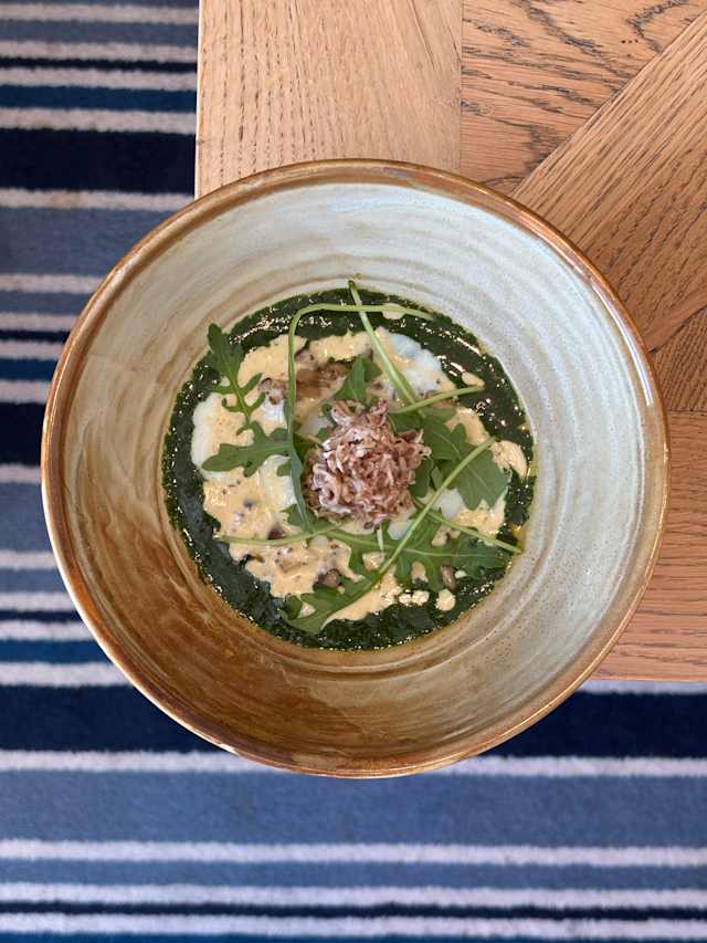 - Coulis de persil beurre noisette, duxelles de champignons, crème de truffe
