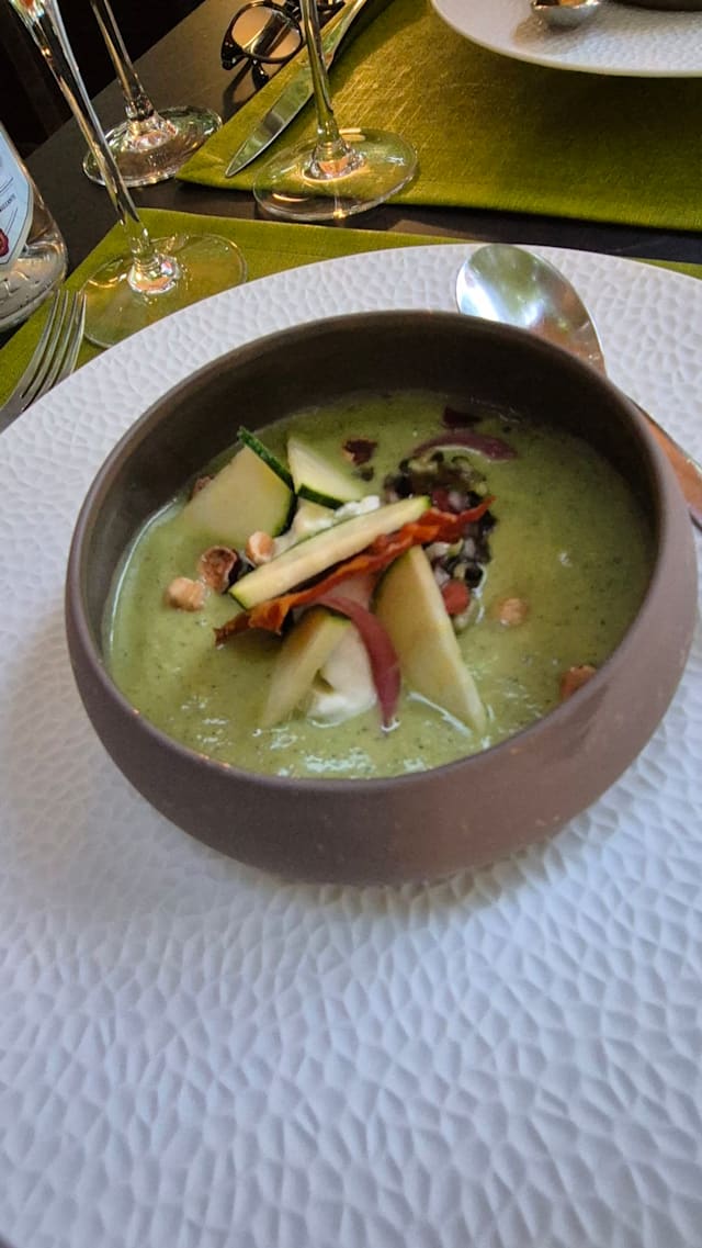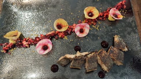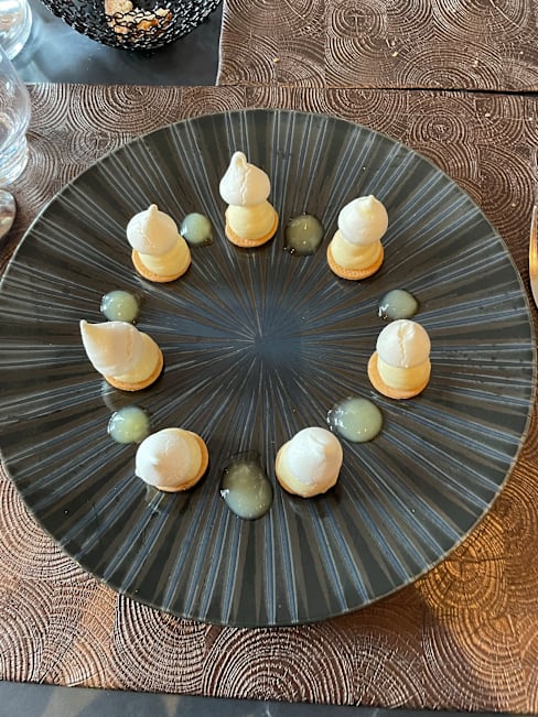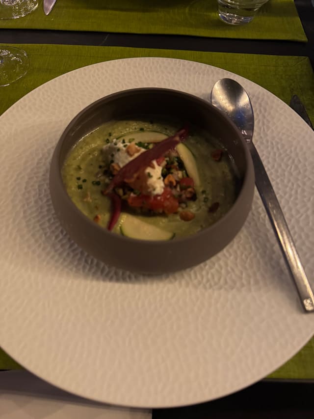 6.5/10Kir Royal didn’t taste like champagne or appear to have any kir in it. Goat’s cheese in starter was dry and not creamy. Sous vide pork in main course was lovely. Otherwise generally OK but nothing special. Not sure it merited being in Michelin