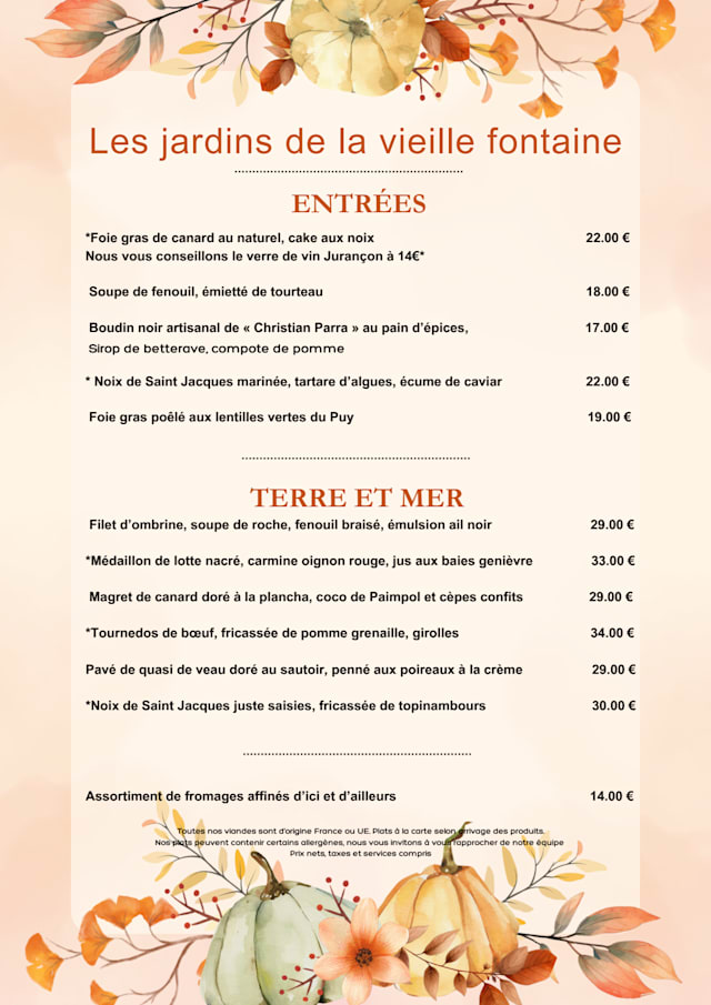 Menu "La Vieille Fontaine" - 10 personnes max€66 per guest
