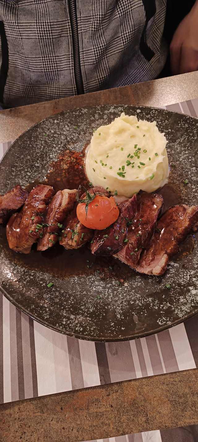 - Magret de canard sauce 4 epices, miel, puree de pommes de terre maison