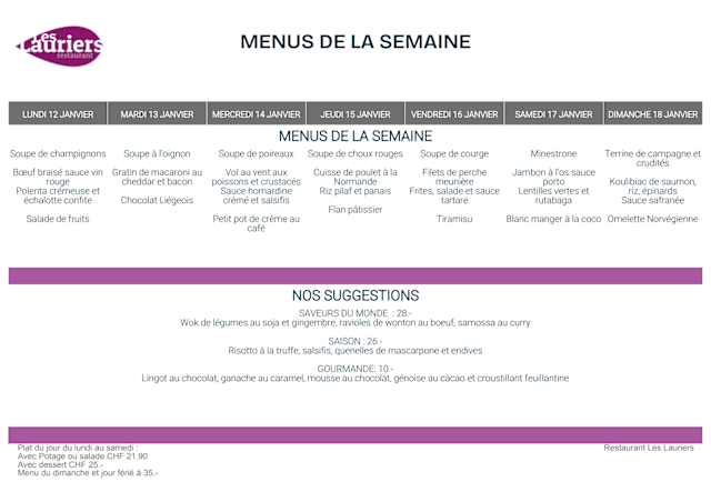 10/10Very tasty chicken wok, served by smiling and competent waitress. Looking forward to my next meal at Les Lauriers. SL 11 November 2021