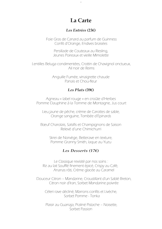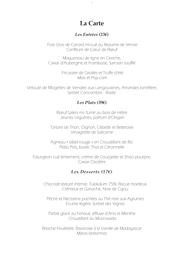 10/10We've spent an excellent diner with the gastronomy and all of the professional staff ! It's the 2nd time and I will continue to come because there is no only the quality's dishes but also they selected some masterpiece of art which come to complete by senses on the menu of the season. A very tasty and treat of flavours ! Thank you Chef Pierre Henri Morel