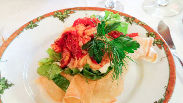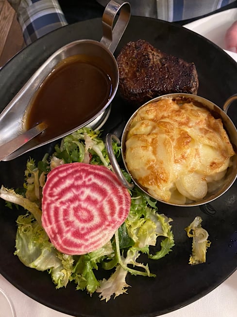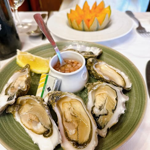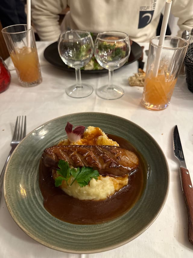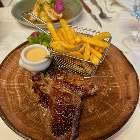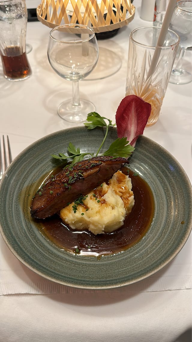 7.5/10We enjoyed a very good evening with good french food fx Foie gras terrine with onioncompot, Maldon seasalt and briochebread. Then followed by beef entrecotes and juicy duck breast with the best crisp duckskin. I actually never had more delicious and tender duckbreast - the taste, the seasoning and roasting was superb. The sauce with the morelles could have been more round and seasonned in my opinion. And not served in a small bowl in the size of an egg-cup;-). An is there a reason for - why do you not make a REAL SAUCE BEARNAISE TO ORDER - to go with your beef steaks..? The real sauces from french gastronomy - like sauce bearnaise, hollandaise, bordelaise and so on - should be on many/all A la Carte servings in my opinion. My foie gras terrine had unfortunantly a piece of plastic in it - and that is a unfortunantly mishappen. But if it had been in Denmark - the amount of one of the foie gras had been taken out. Plastic is kind of dangerous in food. Or you should as a minimum served us 2 cups og coffee as a small opologize. But we only got a “Sorry”. That is not right customer/guest treatment. But with that said - our waited (a young guy with.a great smile) - was quick and serviceminded. He understood, that we talk a bit og french/a lot og english - but we understand MOST french and would order and read the menus in french. Thank you for understanding ud! Thank you for a good evening! Maria & Bo, Frederiksberg - Copenhagen/Denmark????????