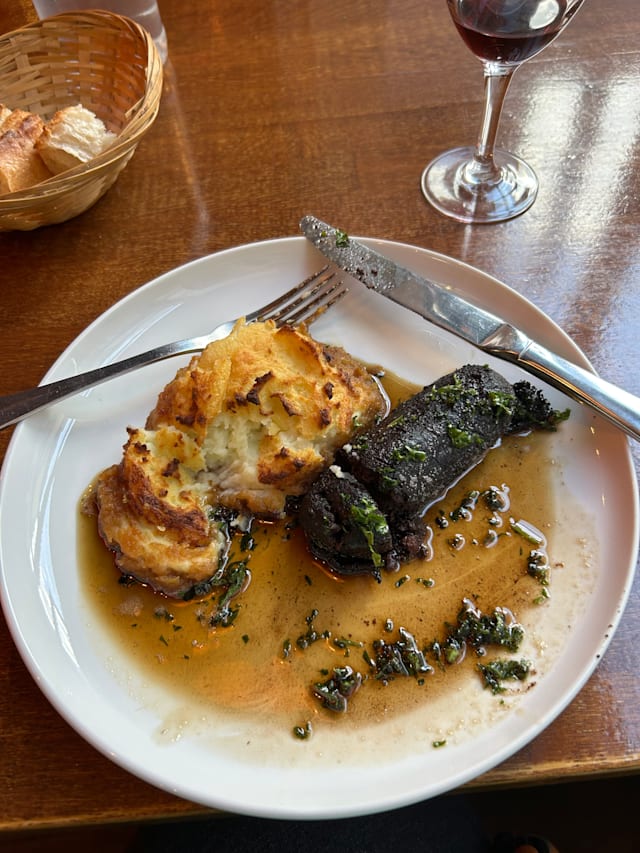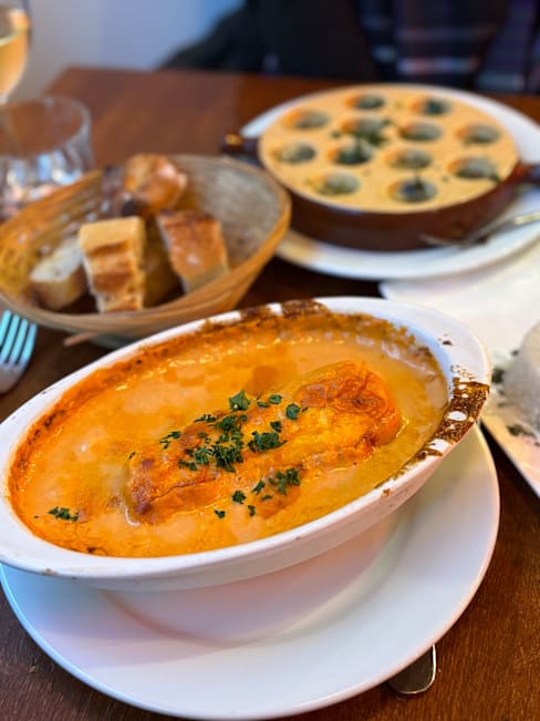 9/10We booked this online partly because the reviews were good and the location was just right for that day's plans near Hotel de Ville. And what a great choice it turned out to be! We arrived an hour before our booking, driven inside from a very cold, hard rain. The owner welcomed us and had a warm table waiting for us by the window, as I had requsted. Our lunch began with a lovely salad Lyonnaise, as well as escargot - both of which were perfect. A revelation was the pike dumpling, a concoction that was surprisingly light in text and full of flavor, thanks to the fresh fish and the lobster bisque in which the dumpling was placed. Everything about this lunch was excellent.