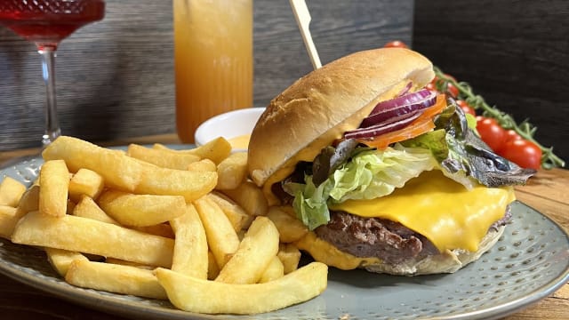 Pur bœuf coupé au couteau, préparé pour vous et accompagné de frites croustillantes.