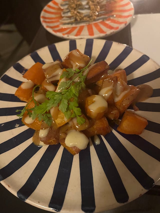 10/10Very friendly and helpful waiter Fiacrito. Helpings were generous and very tasty. Lots of flavour in all of the dishes. Fried courgettes with feta (my favourite). My husband particularly liked the patatas bravas as the chef made them with sweet potatoes.