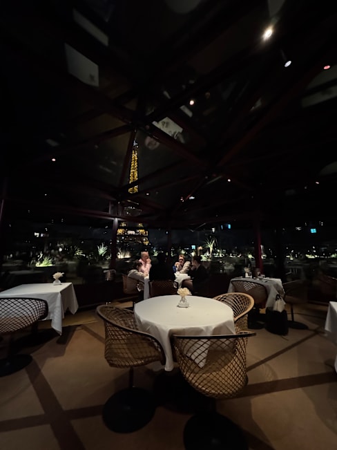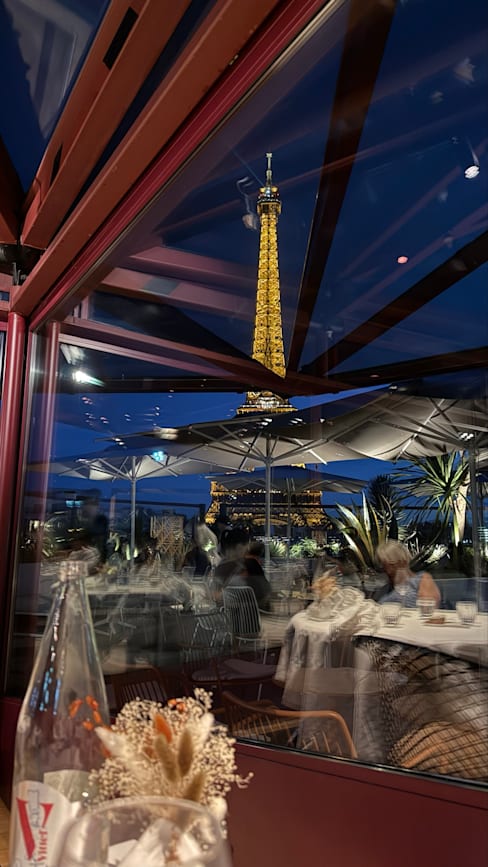 8.5/10The view is awesome, but it’s a photo point, of course. Food looked good, that and the view is where the price comes from, but taste was more average. Service was initially nice, although our first waiter had a really strong body smell (without being rude, that African smell…). But after some while it got messy: multiple waiters for our table, wine glasses ran empty (while the bottle was not next to table, so we really relied on them). Courses came either too fast or took forever. It’s a good place to have dinner with a big view on the Eiffeltower (although the metal construction of the roof is not very practical for the perfect picture). For a Parisian gourmet food experience I’d recommend other restaurants.