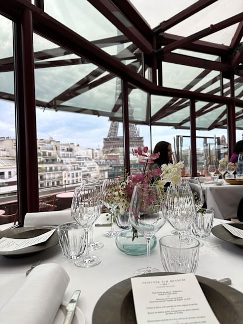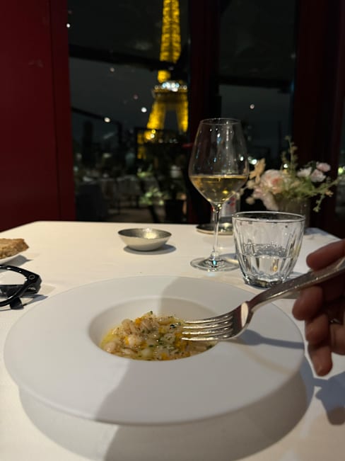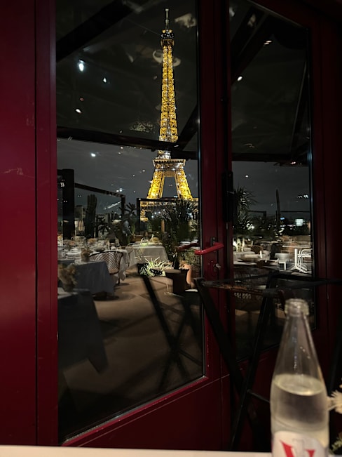 6.5/10Mediocre food, under seasoned. Beautiful space. Awful drink service. Sat half the meal with two empty glasses and no one came to offer us a drink. Asked for a dessert one at the end of dinner and no one ever came back with it. Wound up just leaving. They’re lucky they have a beautiful view of the Eiffel Tower.