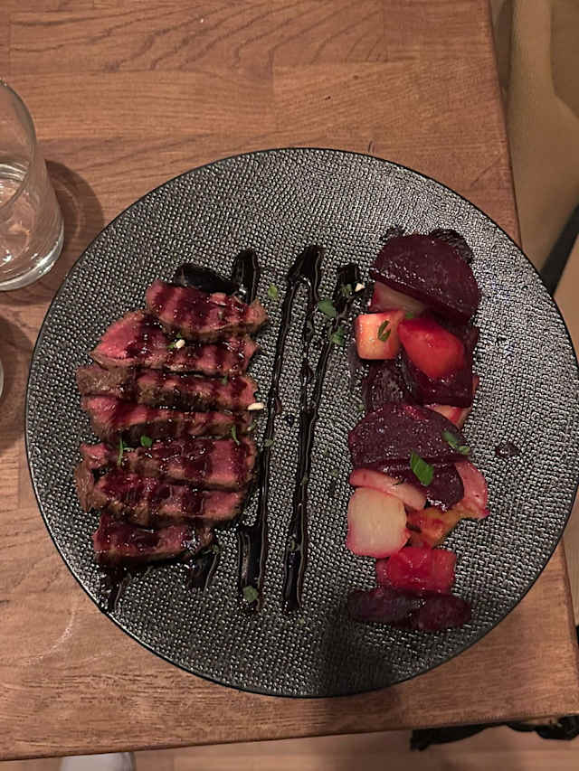- Tataki de boeuf, sauce réduite au soja, légumes de saison glacés