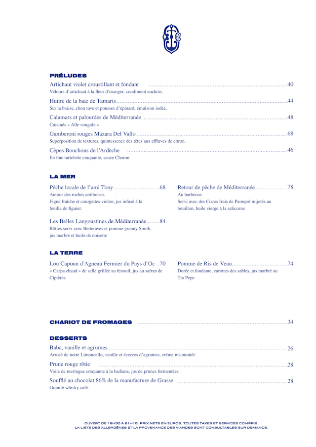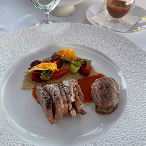 10/10Wonderful seaside Michelin dining! No less than 11 amuses, palette cleansers, and petit four amped up the impeccable flavors even of the ala carte menu. Both the beef and turbot were perfection. Absolute must visit whilst in cap d’Antibes. Only nit I’d pick is they should trim the bushes lower as they obstruct the stunning sunset view whilst sitting.