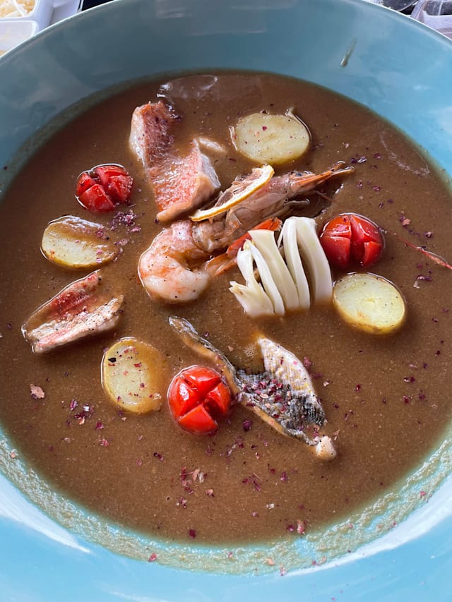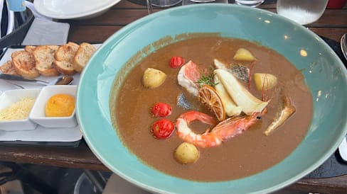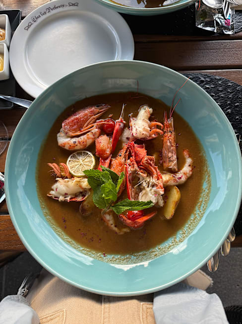 3.5/10We had a bouillabaisse for the price of € 48.00. It was half cold, with no flavourful seasoning and three small pieces of fish with a gamba. If you like being ripped off like that, you can try it for yourself.